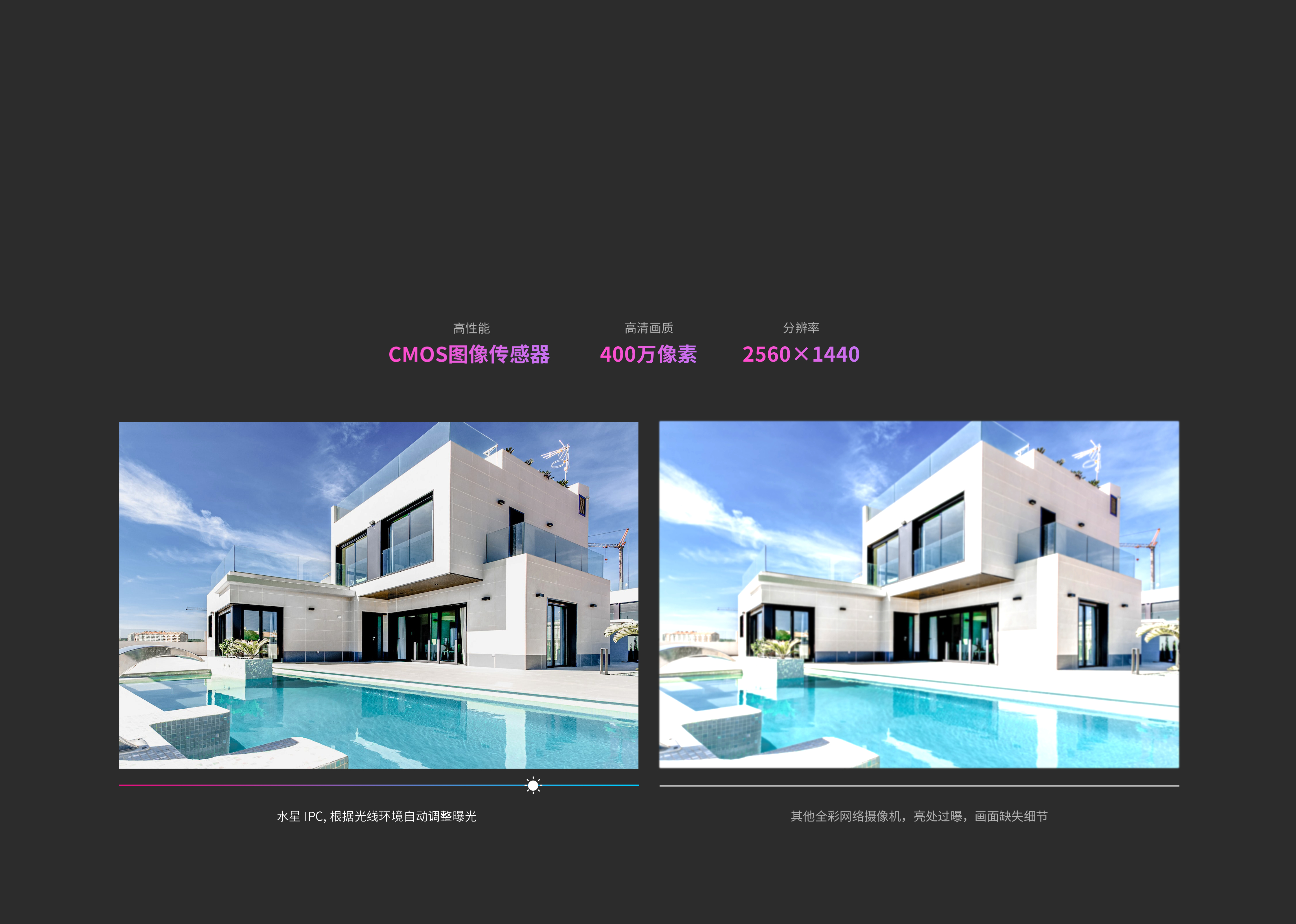高性能CMOS图像传感器,400万高清,分辨率可达2560×1440。